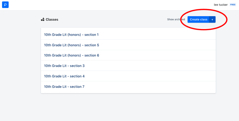 First things first, when you log in, you’ll be taken to the home page where you’ll see any classes you’ve already created. To create a new class, simply click “Create Class” in the top right corner.